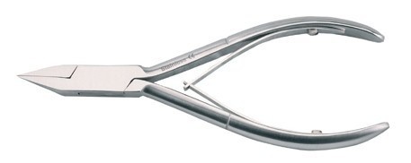 Als je een hoektang gebruikt voor het knippen van de hele nagel dan loop je het risico dat de tangkop breekt.
