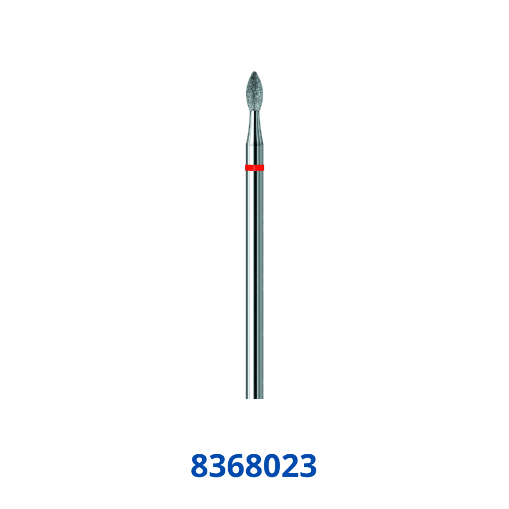Druppelfrees met fijne diamant structuur. Deze diamantfrees met fijne structuur maken het mogelijk om zelfs de gevoelige huid/nagel te behandelen. Zeer geschikt voor gebruik bij de extreem gevoelige huid.