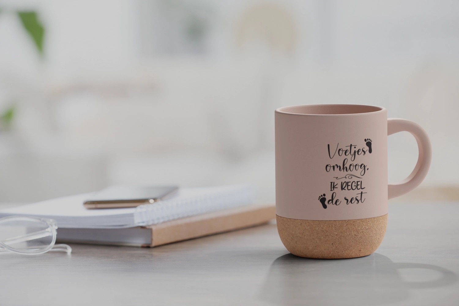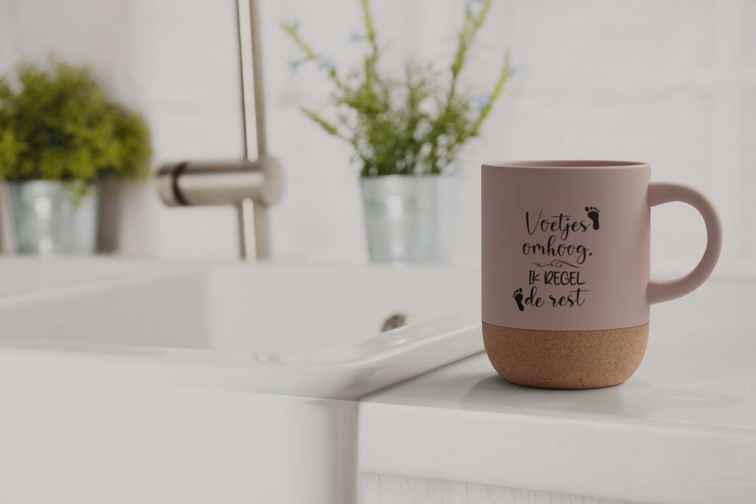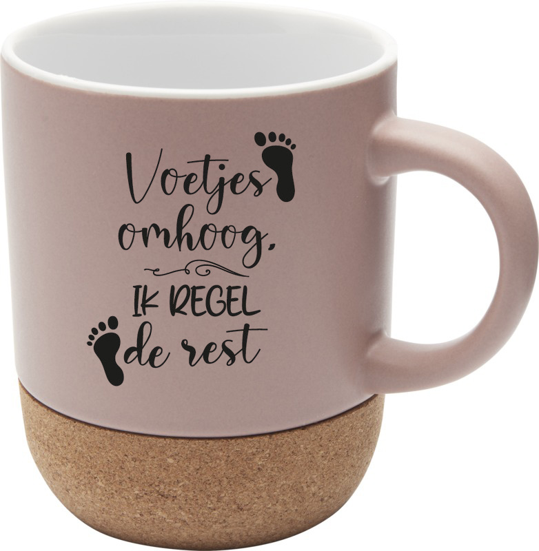 Voetjes omhoog, jij bent in control! Deze dusty pink mok met natuurlijke kurken onderzijde is dé must-have voor elke pedicure met stijl. Perfect voor je koffiemoment tussen de behandelingen door.