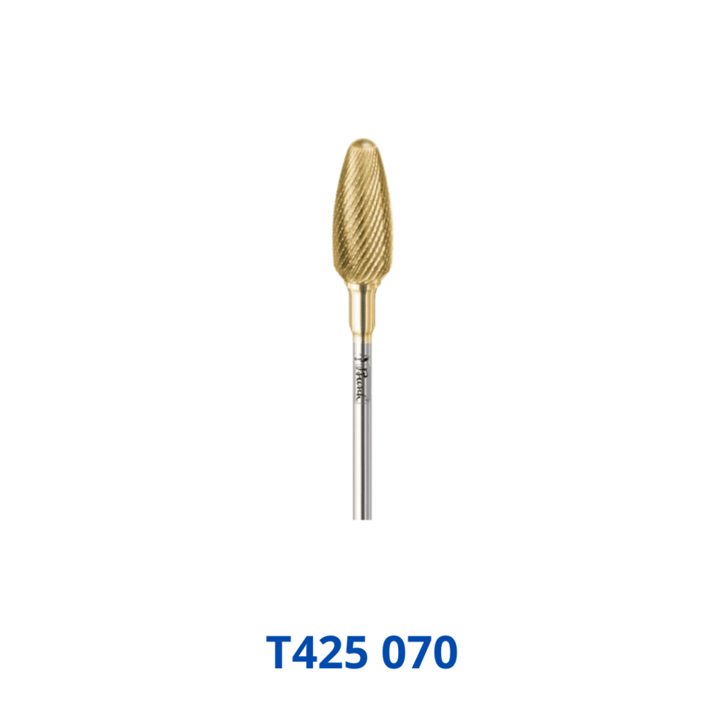 Hardmetalen frees voorzien van een titanium-nitrid coating. Zeer geschikt voor het frezen van dikke nagels tot en met het slijpen van gel en acryl na nagelreparatie of bij kunstnagels.